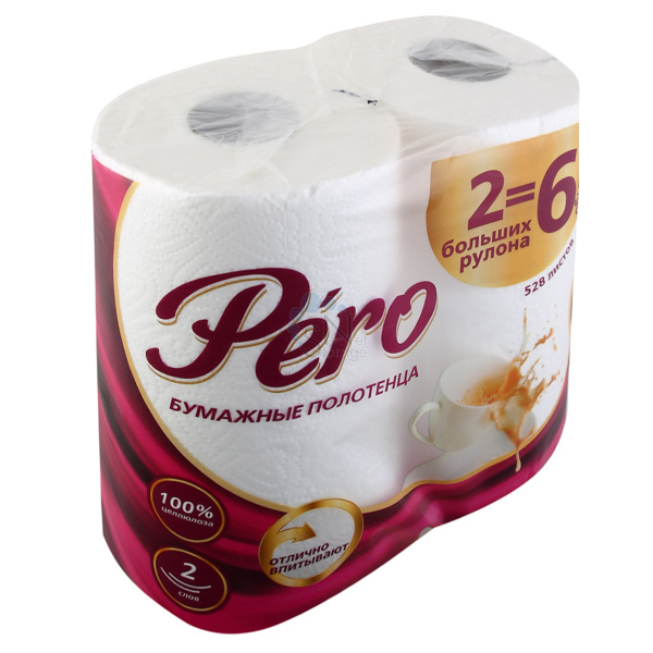 Полотенца бумажные 2-х слойные спайка 2 рулона 66 м 528 листов Grand Pero 7318