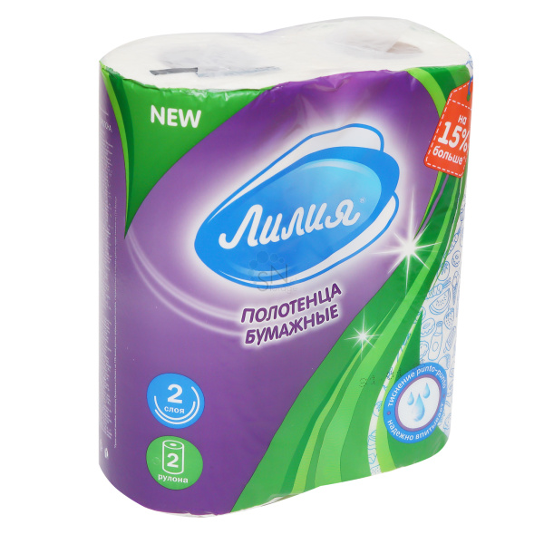 товары для школы и офиса Полотенца бумажные 2-х слойные спайка 2 рулона Лилия 5550/7570 белые