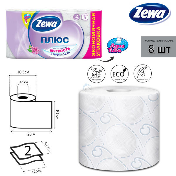 Бумага туалетная 8 рулонов 2-слойная 23 м Zewa Плюс ассорти