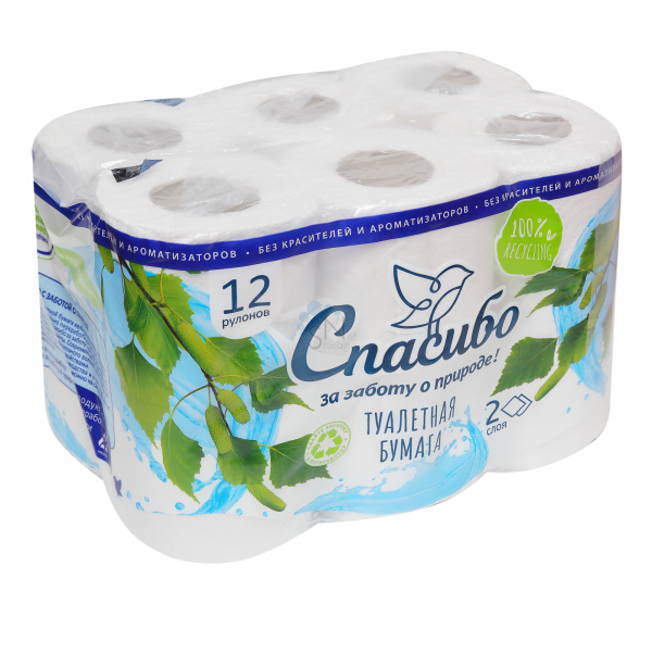 Бумага туалетная 12 рулонов 2-х слойная 13,68м Plushe Спасибо за заботу о природе 73966 белая