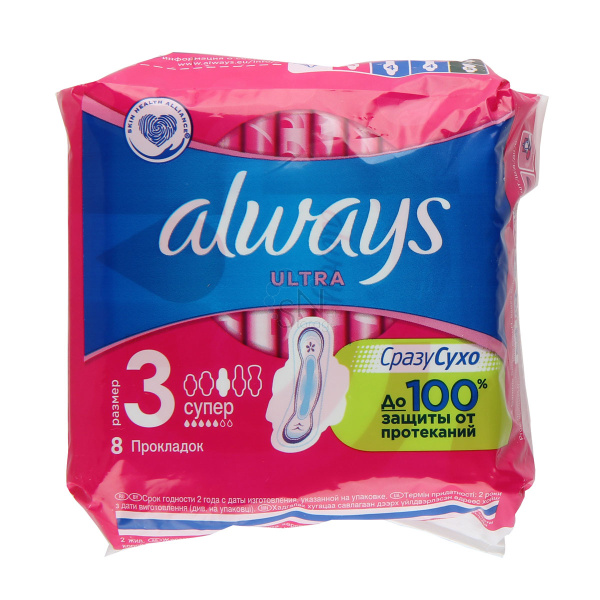 Женские прокладки гигиенические 8шт ALWAYS Ultra Super (3 капли)