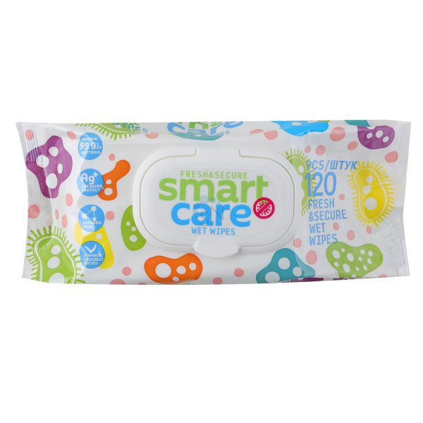 товары для школы и офиса Салфетки влажные 120шт с пластиковым клапаном Для Всей Семьи Smart Care