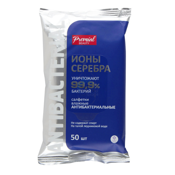 товары для школы и офиса Салфетки влажные антибактериальные 50шт с клеевым клапаном PREMIAL Серебрянная защита 74583