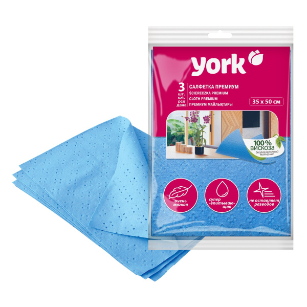 Салфетка вискозные 35*50 3шт сверхвлаговпитывающая Премиум YORK 020300