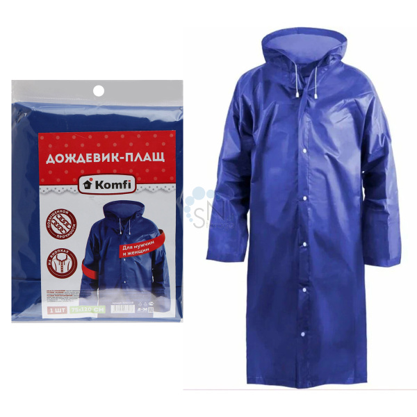 Дождевик-плащ на кнопках с капюшоном 70*120 см EVA 110 мкм Komfi EVA005B синий