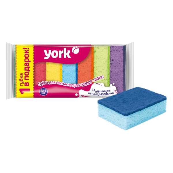 Губки для посуды 100*65*30 мм 6+1 шт поролон с абразивным слоем Колор Люкс York 30180