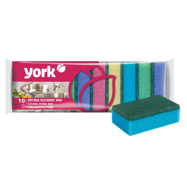 Губки для посуды 80*50*25 10шт поролон с абразивным слоем MIDI York 030010