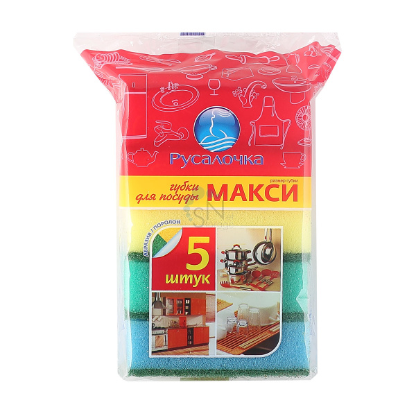 товары для школы и офиса Губки для посуды 95*65*30 5шт поролон с абразивным слоем Макси INSULA 990051