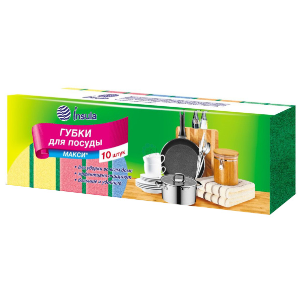 Губки для посуды 8*6*4,3 см 10шт поролон с абразивным слоем Макси INSULA Оптимум 990594
