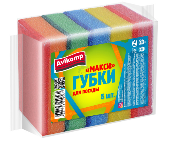Губки для посуды 85*60*25 5шт поролон с абразивным слоем Макси Eco Technology Avikomp 40561