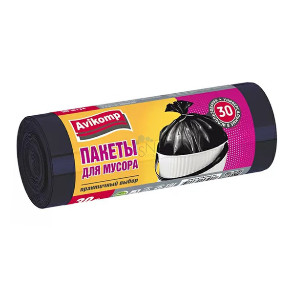 товары для школы и офиса Мешки для мусора 30 л в рулоне 30 шт 48*58 см ПНД 7 мкм Avikomp Praktisch 5991 черные