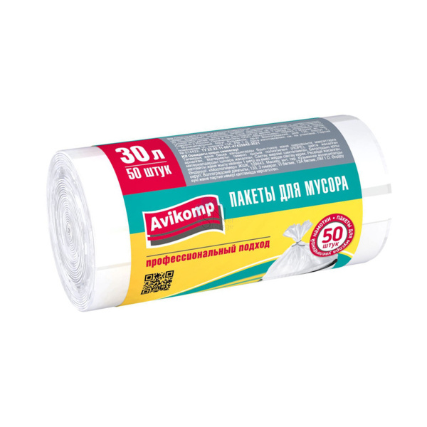 товары для школы и офиса Мешки для мусора 30 л в рулоне 50 шт 48*58 см ПНД 6мкм Professional 0144 белые