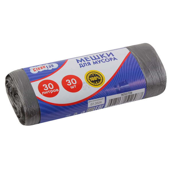 товары для школы и офиса Мешки для мусора 30 л в рулоне 30 шт 45*54 см ПНД 5,5 мкм CleanLab 9050708 черные