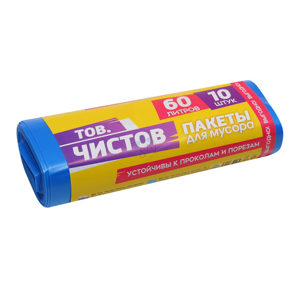 Мешки для мусора 60 л в рулоне 10 шт 58*68 см ПНД 22 мкм Тов.Чистов 0025 синие