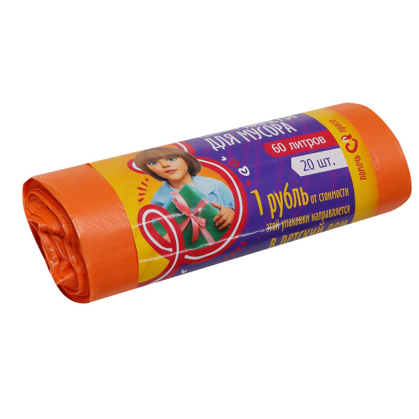 товары для школы и офиса Мешки для мусора 60 л в рулоне 20 шт 58*68 см ПНД 11 мкм Avikomp Помочь Просто 2872 оранжевые