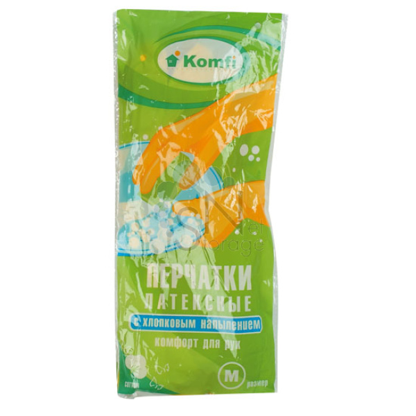 товары для школы и офиса Перчатки латексные 1 пара (2 шт) размер М с х/б напылением Komfi 3046/3042 желтые