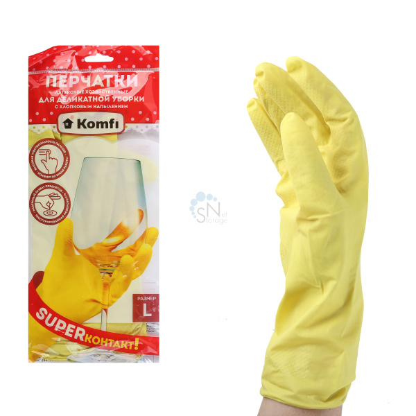 товары для школы и офиса Перчатки латексные 1 пара (2 шт) размер L д/деликат уборки Komfi 17063 желт