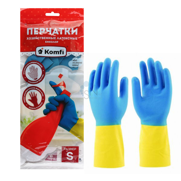 Перчатки латексные 1 пара (2 шт) размер S BiCOLOR 25816/34262 (желтый/синий )замена (беж/бирюз)