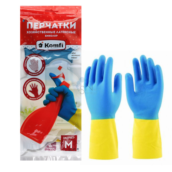 Перчатки латексные 1 пара (2 шт) размер M BiCOLOR 25817/34261 (беж/бирюз)
