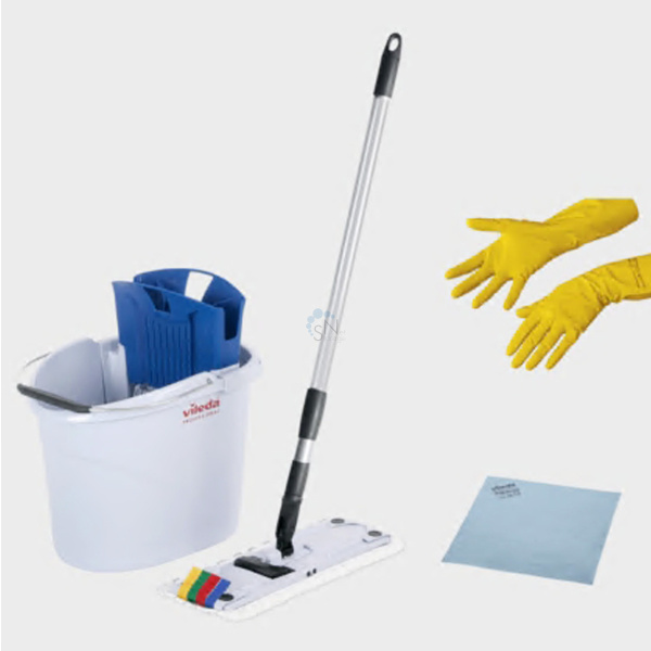 Швабра с отжимом и ведром 10 л насадка микрофибра+салфетка Vileda Professional УльтраСпид Мини Промо 161099 синий